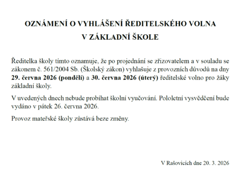 Pro zaslání životopisu nebo více informací pište na email: zs.rasovice.66@seznam.cz