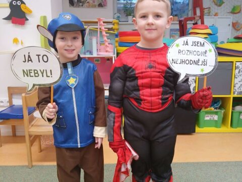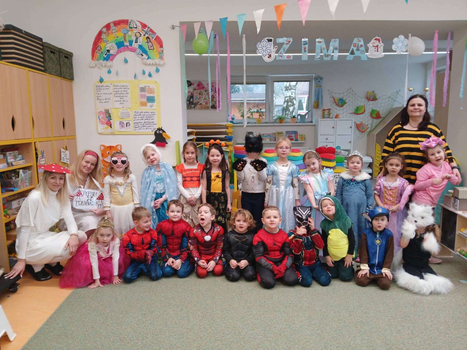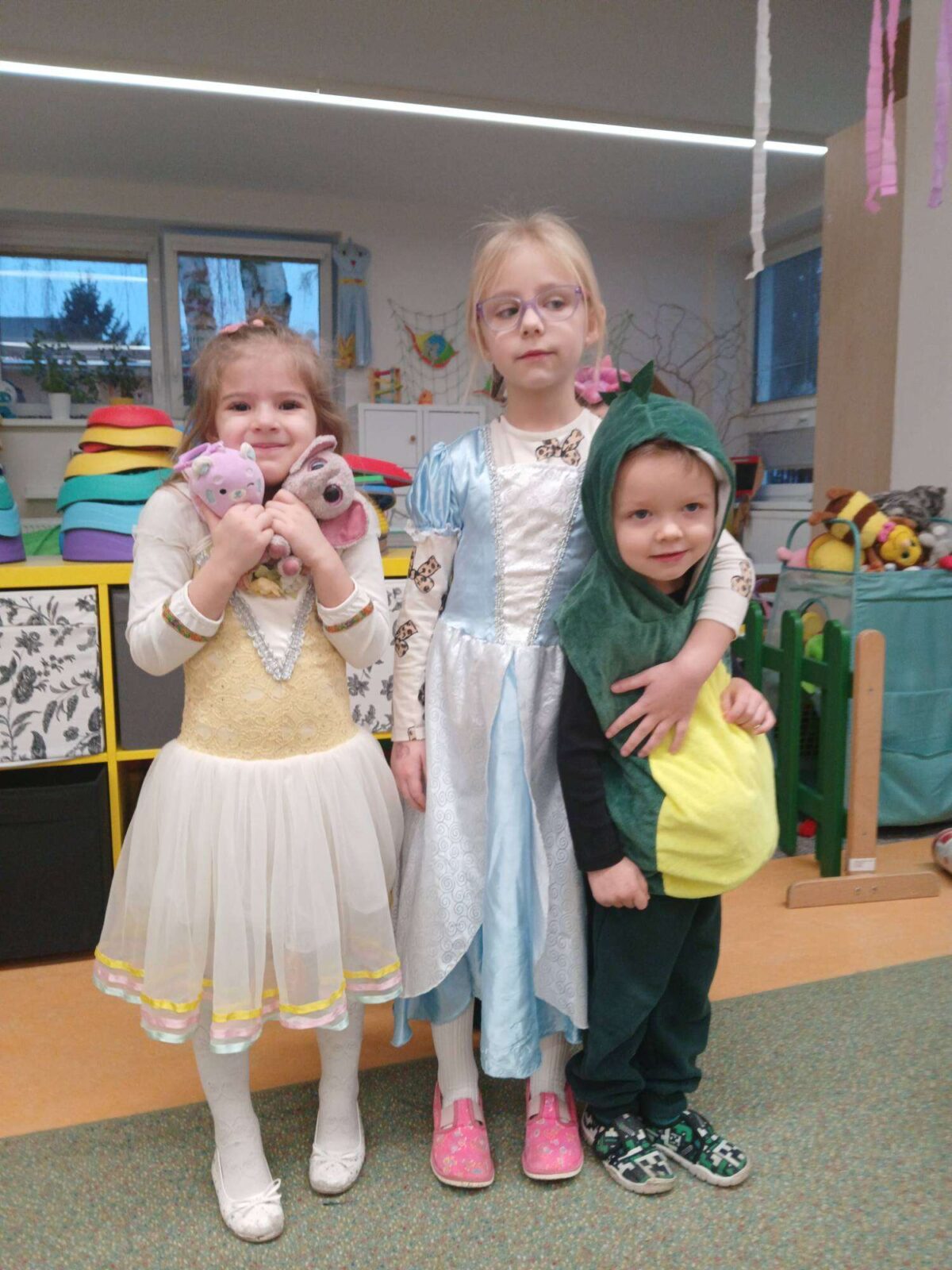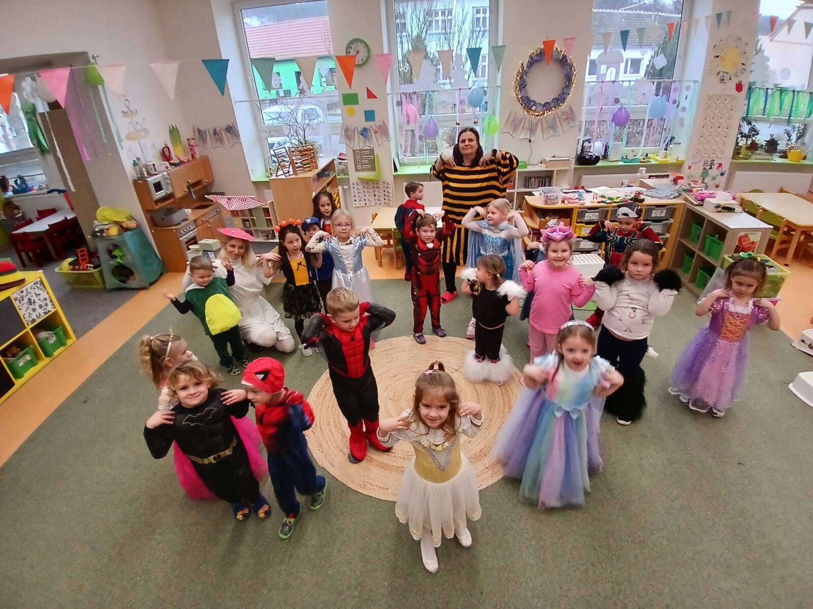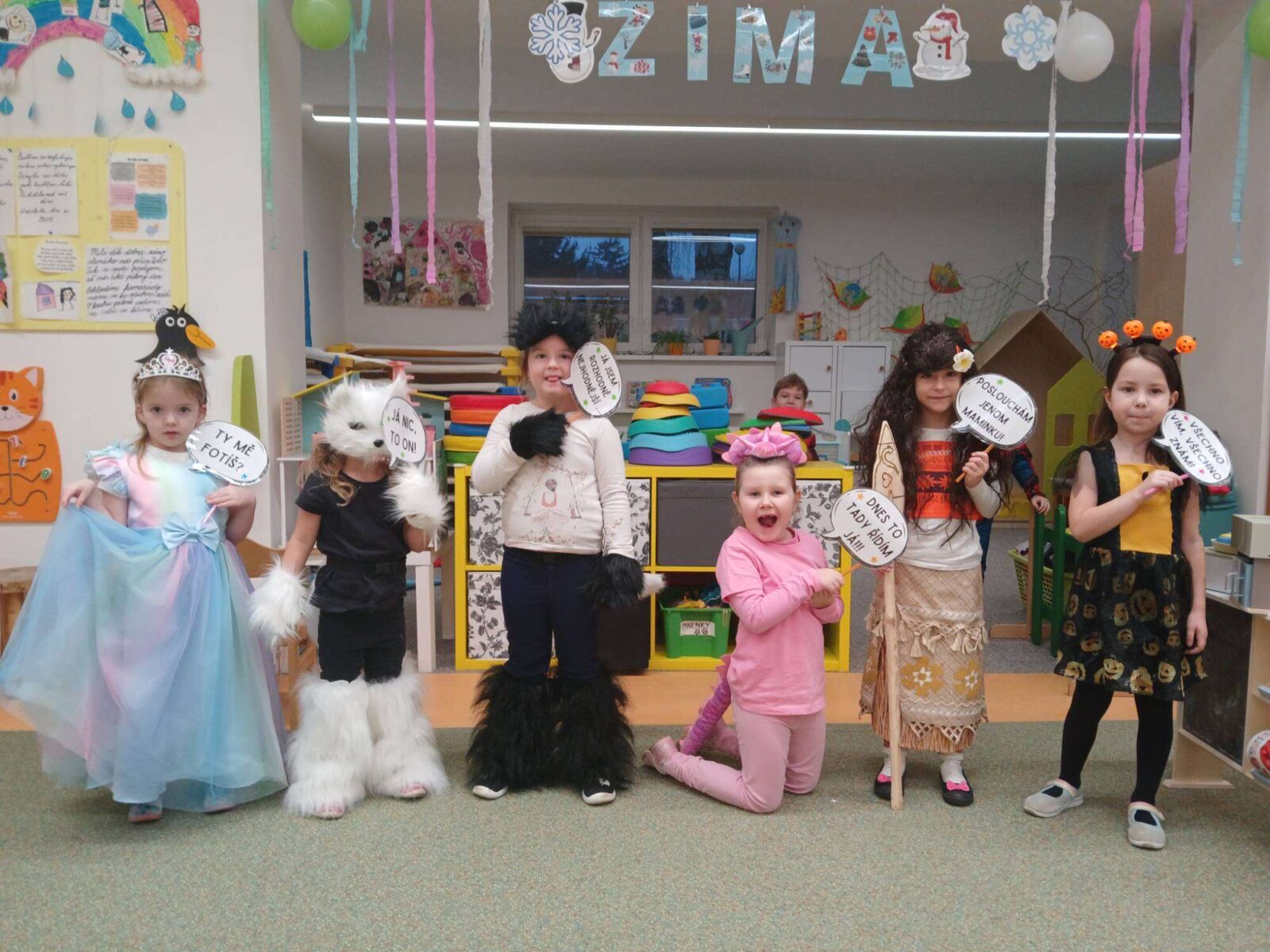 V únoru jsme si užili v obou třídách veselý karneval. Starší děti si nejprve vyráběly papírové žabáky a plnily drobné aktivity motivované karnevalem. Poté jsme si společně zahráli pohybové hry Maso-půst a Tanec s kloboukem, při kterých si děti procvičily především postřeh. Nechybělo ani vystoupení – děti zpívaly po skupinkách před ostatními kamarády; odvahu našel opravdu každý, což ostatní odměnili potleskem. Karneval jsme zakončili tancem na písničky Ouky Kouky a Ptačí tanec. U Broučků bylo neméně veselo a děti si taktéž užily spoustu aktivit. 🙂