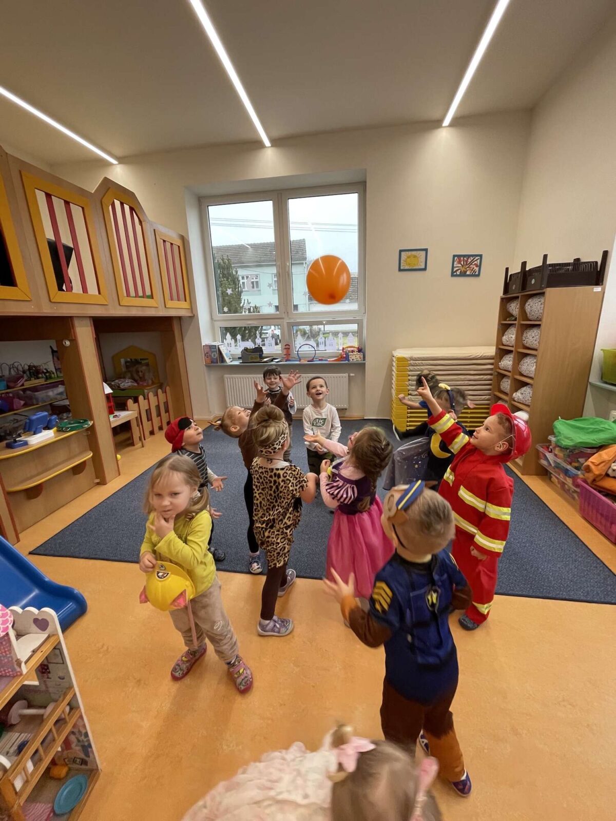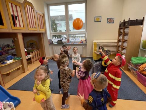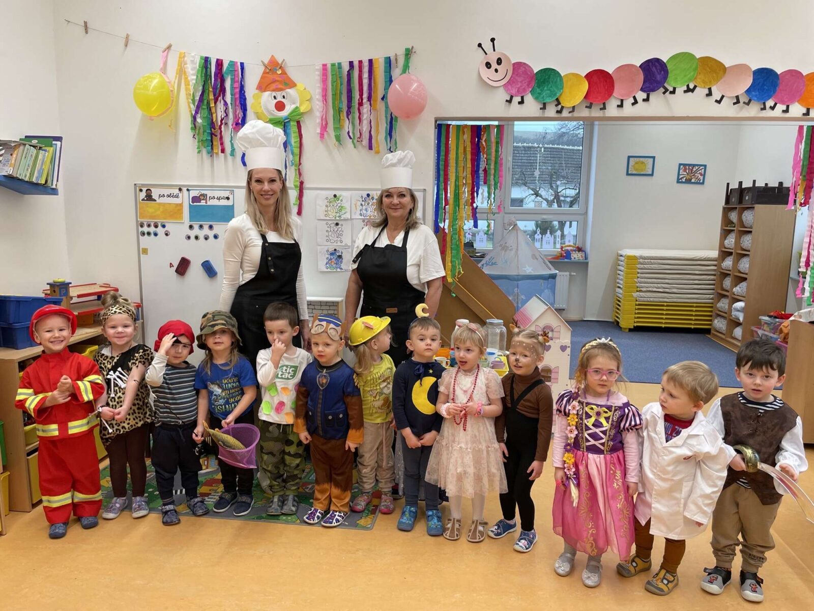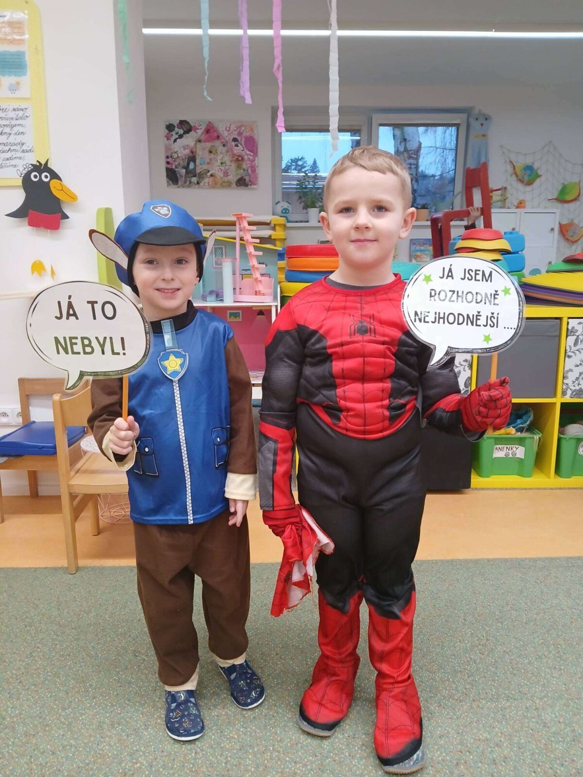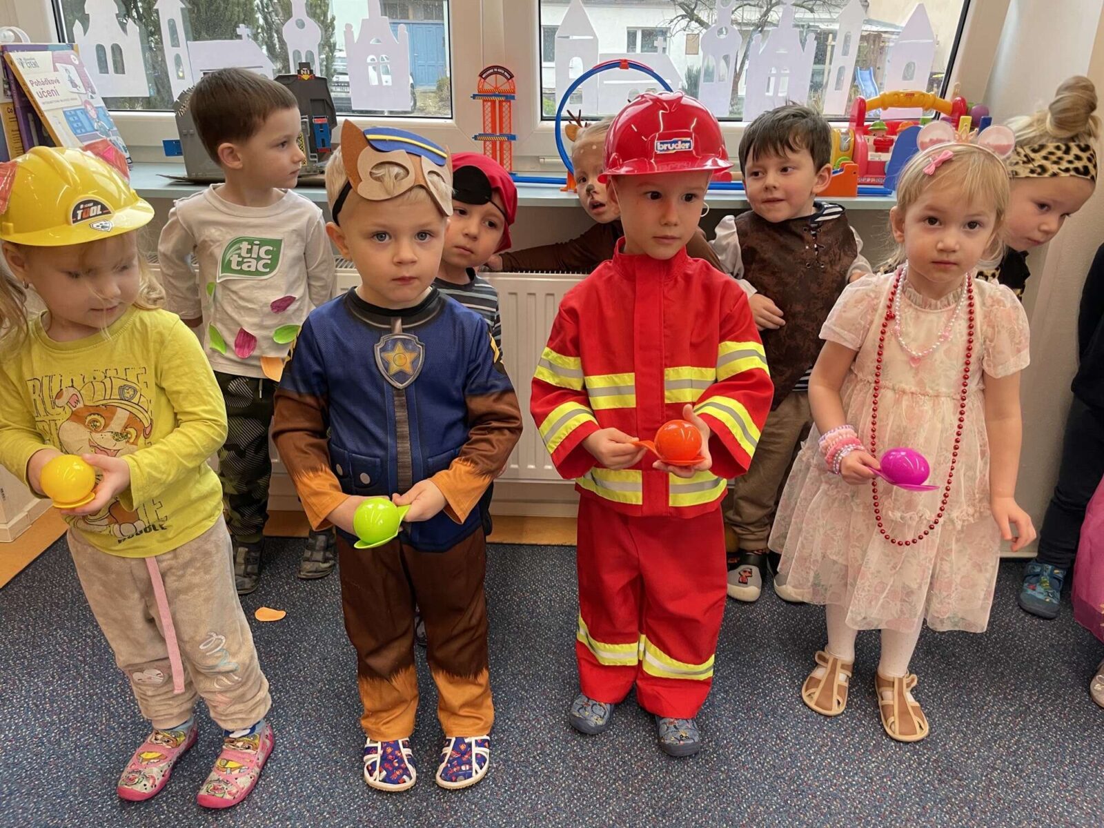 V únoru jsme si užili v obou třídách veselý karneval. Starší děti si nejprve vyráběly papírové žabáky a plnily drobné aktivity motivované karnevalem. Poté jsme si společně zahráli pohybové hry Maso-půst a Tanec s kloboukem, při kterých si děti procvičily především postřeh. Nechybělo ani vystoupení – děti zpívaly po skupinkách před ostatními kamarády; odvahu našel opravdu každý, což ostatní odměnili potleskem. Karneval jsme zakončili tancem na písničky Ouky Kouky a Ptačí tanec. U Broučků bylo neméně veselo a děti si taktéž užily spoustu aktivit. 🙂