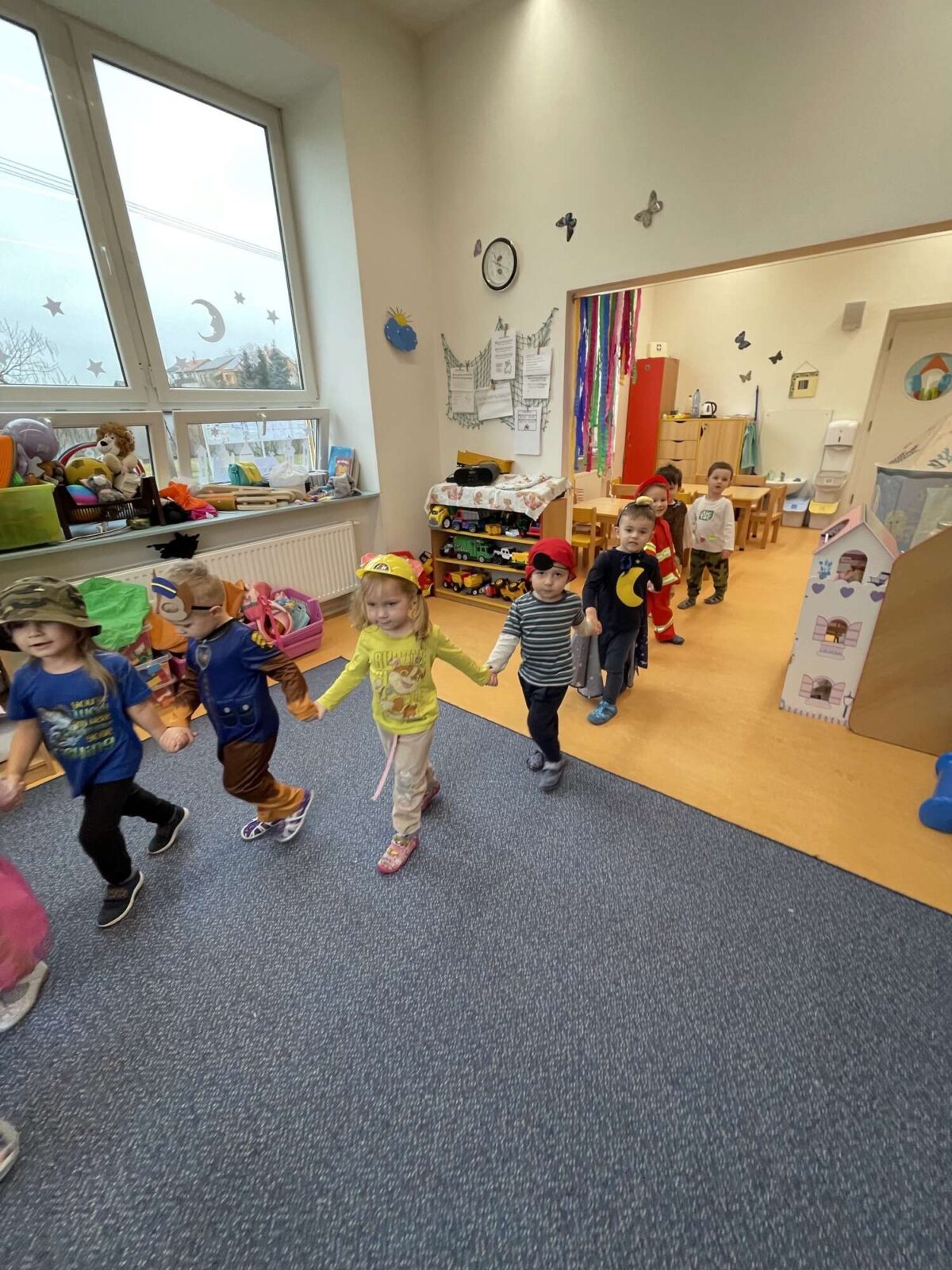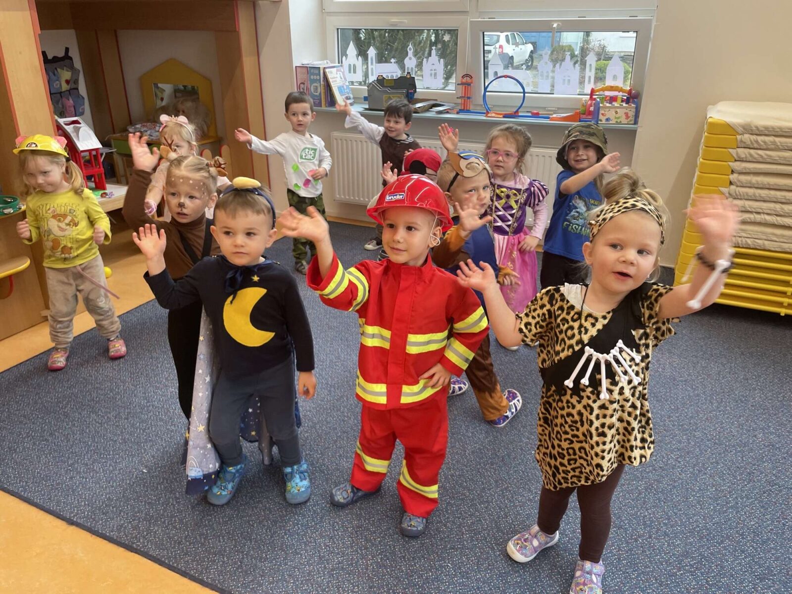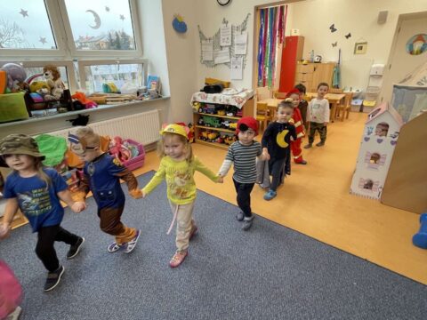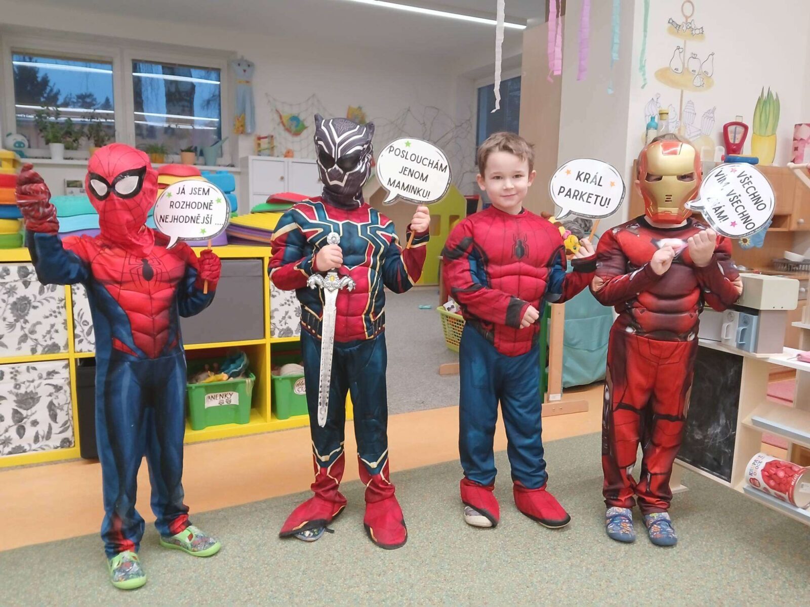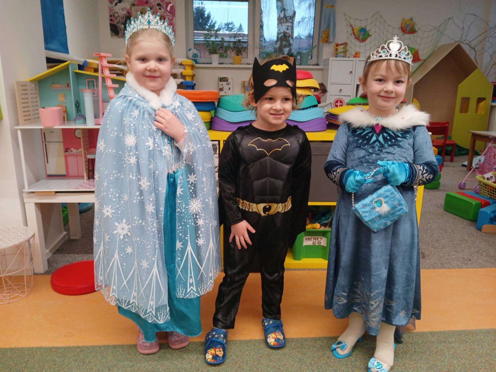 V únoru jsme si užili v obou třídách veselý karneval. Starší děti si nejprve vyráběly papírové žabáky a plnily drobné aktivity motivované karnevalem. Poté jsme si společně zahráli pohybové hry Maso-půst a Tanec s kloboukem, při kterých si děti procvičily především postřeh. Nechybělo ani vystoupení – děti zpívaly po skupinkách před ostatními kamarády; odvahu našel opravdu každý, což ostatní odměnili potleskem. Karneval jsme zakončili tancem na písničky Ouky Kouky a Ptačí tanec. U Broučků bylo neméně veselo a děti si taktéž užily spoustu aktivit. 🙂