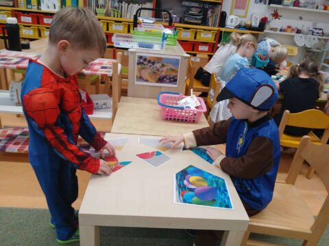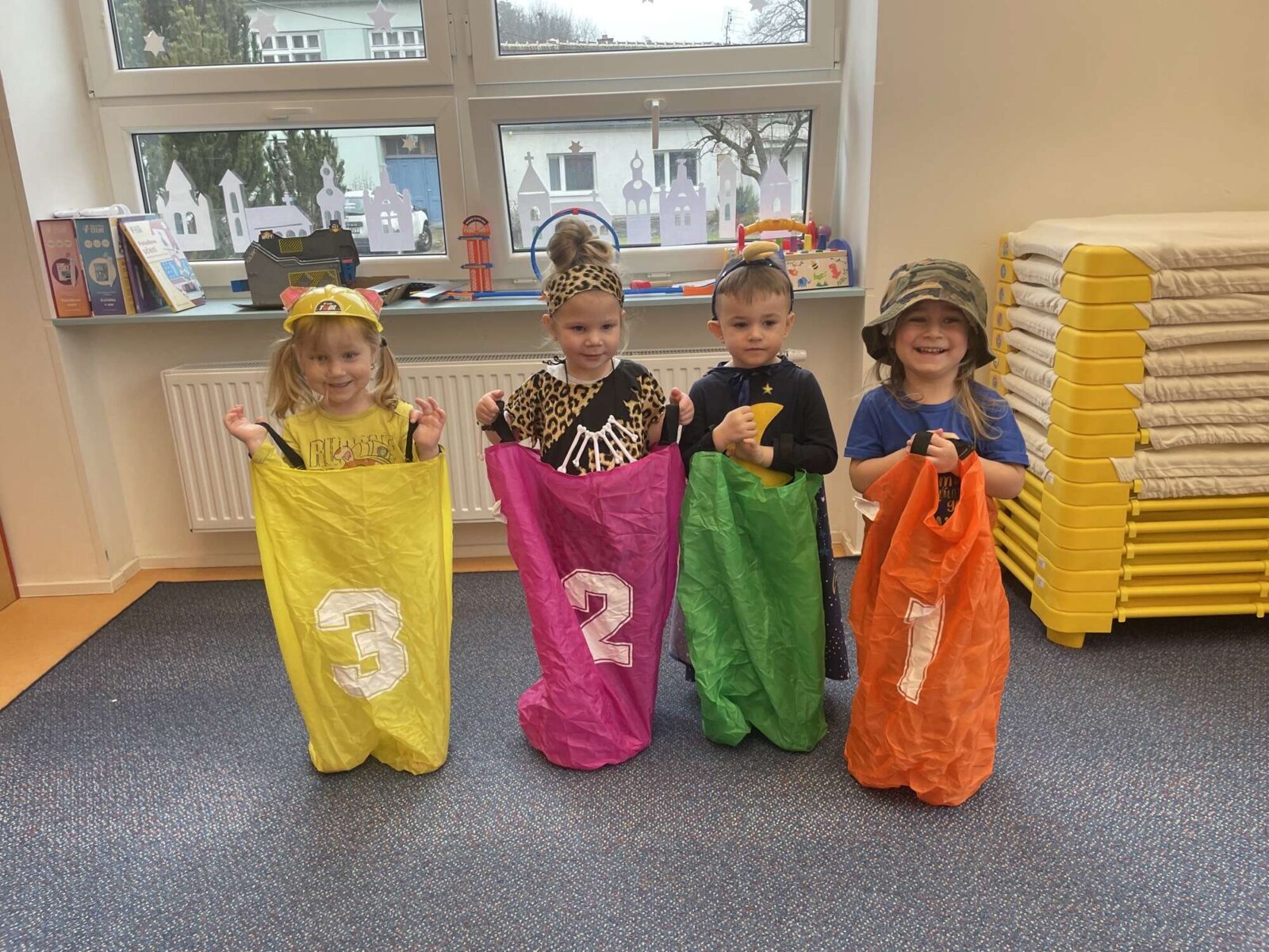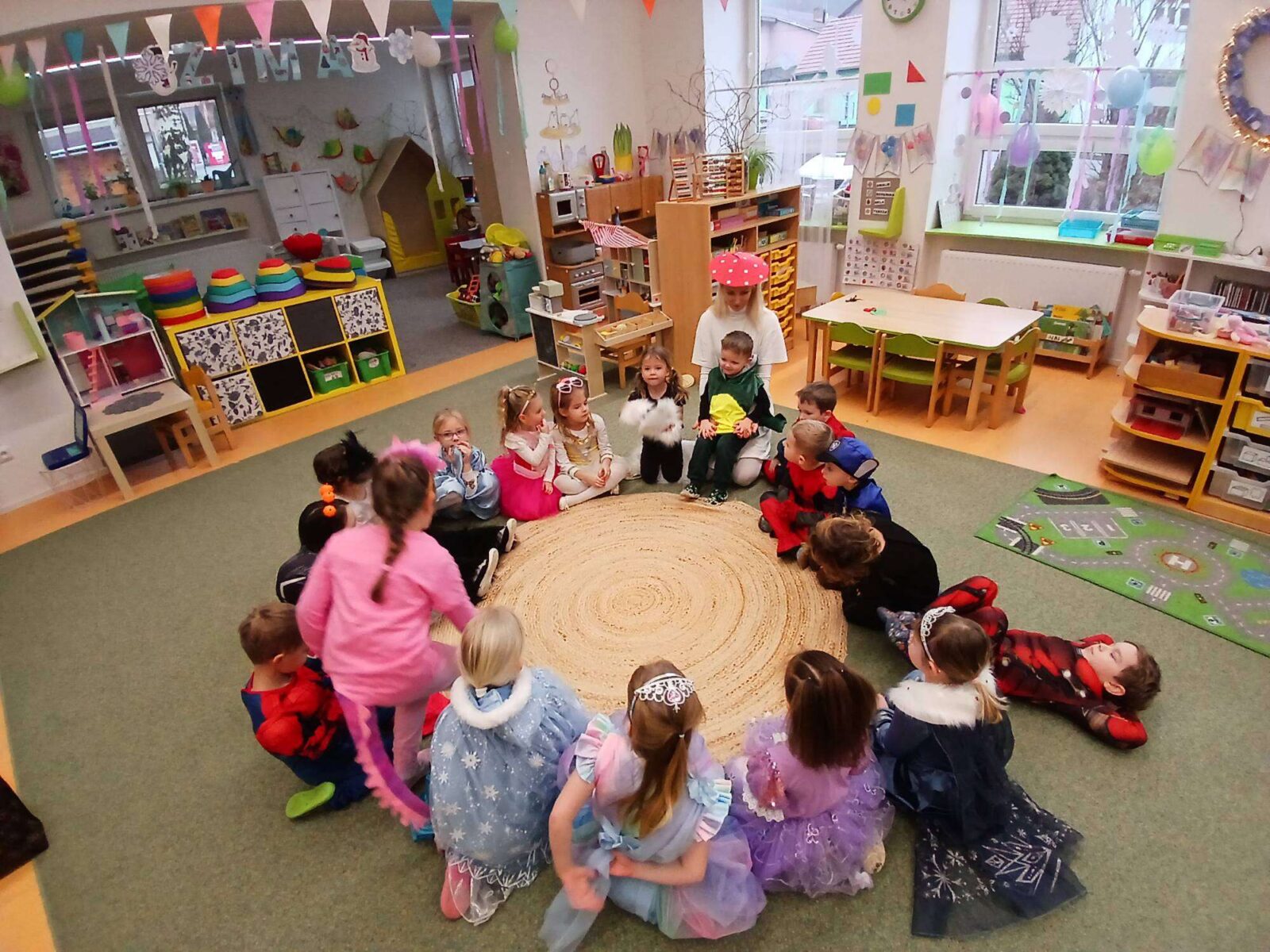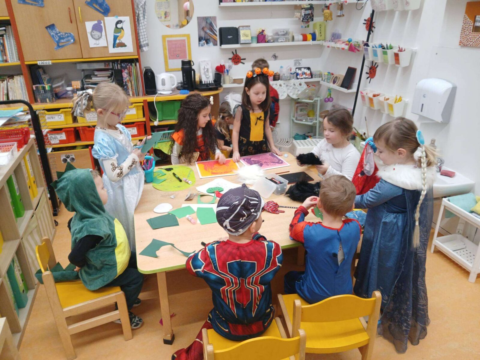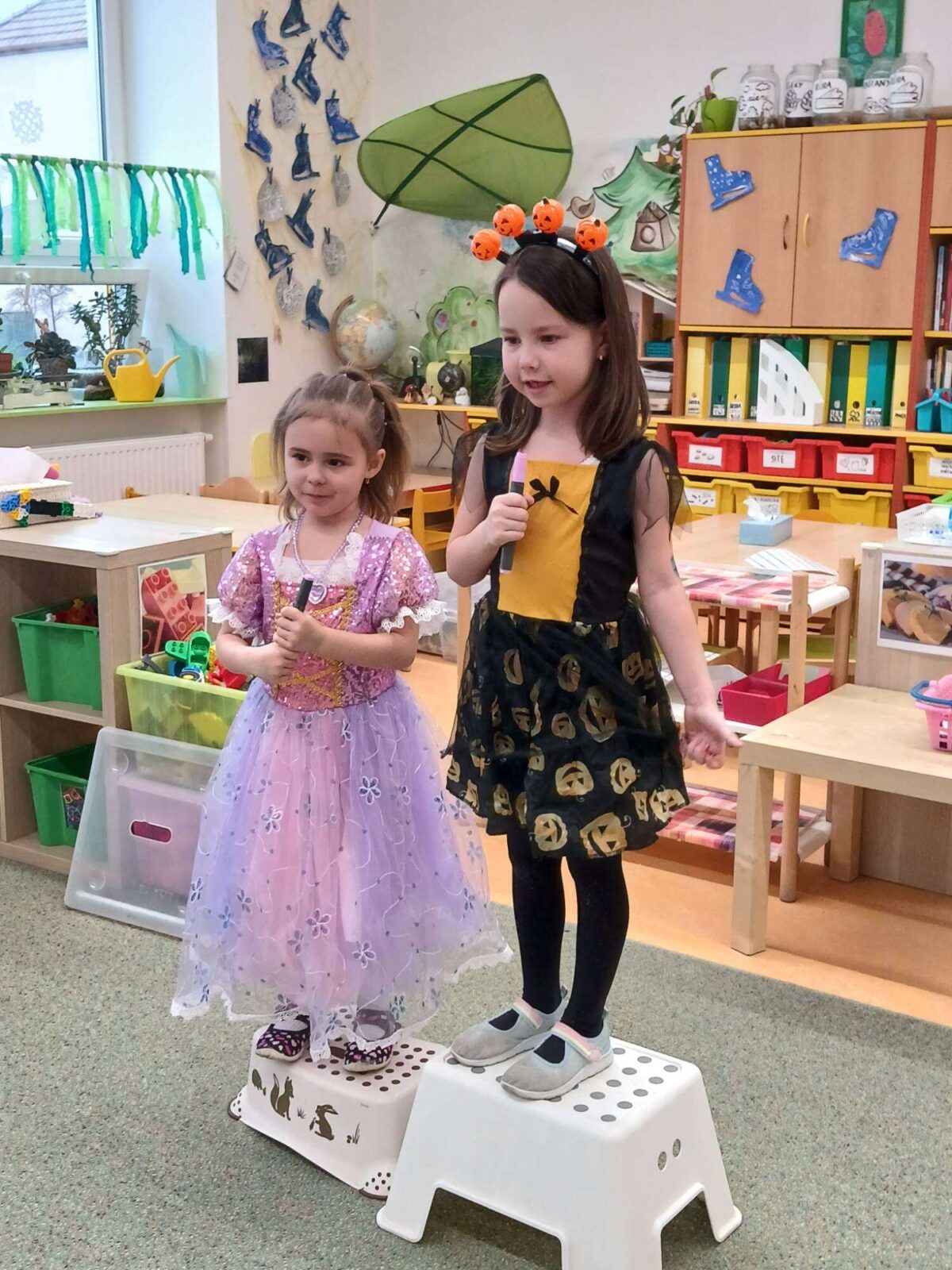 V únoru jsme si užili v obou třídách veselý karneval. Starší děti si nejprve vyráběly papírové žabáky a plnily drobné aktivity motivované karnevalem. Poté jsme si společně zahráli pohybové hry Maso-půst a Tanec s kloboukem, při kterých si děti procvičily především postřeh. Nechybělo ani vystoupení – děti zpívaly po skupinkách před ostatními kamarády; odvahu našel opravdu každý, což ostatní odměnili potleskem. Karneval jsme zakončili tancem na písničky Ouky Kouky a Ptačí tanec. U Broučků bylo neméně veselo a děti si taktéž užily spoustu aktivit. 🙂