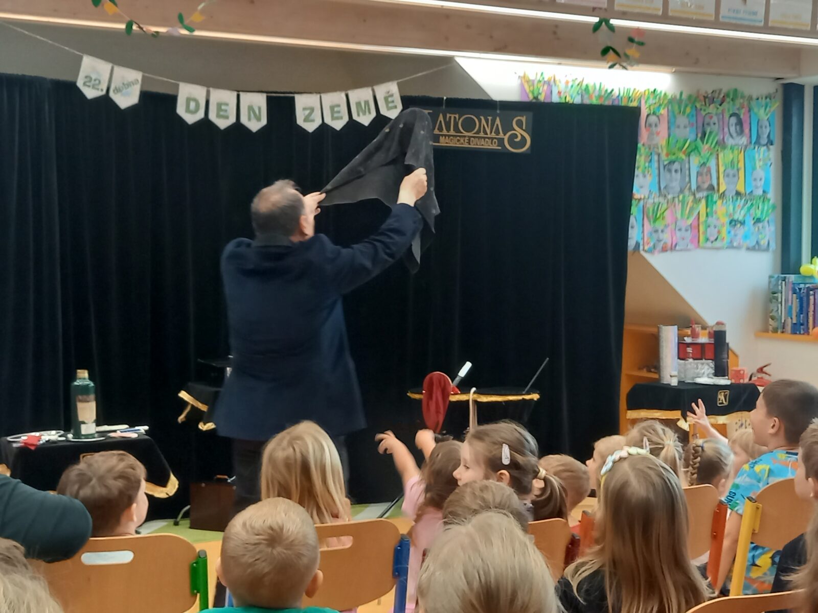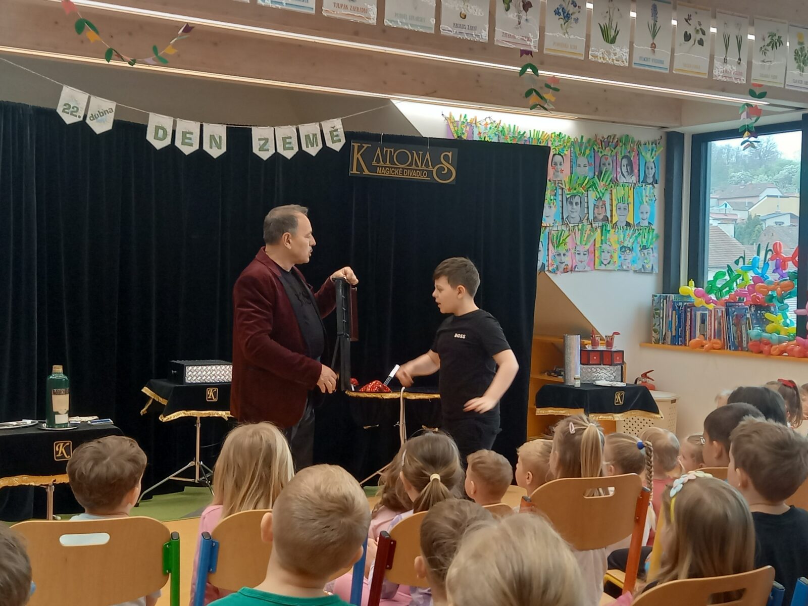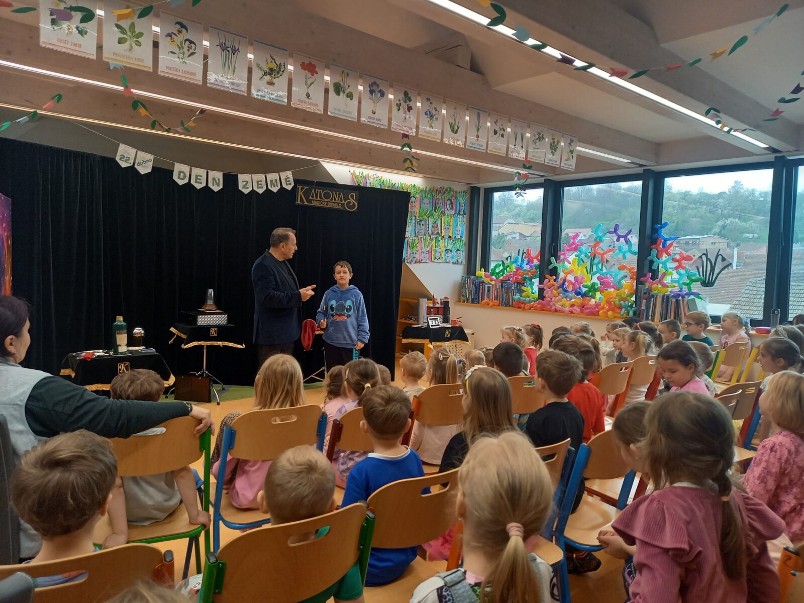 Ve středu 15. dubna měly děti ze základní i mateřské školy možnost zhlédnout vystoupení kouzelníka pana Katonase. Ačkoliv si všichni byli samozřejmě vědomi, že jde o kouzelnické triky, byly pro nás často skutečně nepochopitelné a magické! Děti se dobře bavily a na konci představení dostaly dárek v podobě balónku vymodelovaného do tvaru pejska.
