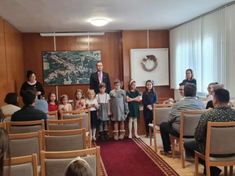 Děvčata z MŠ a ZŠ zpříjemnila slavnostní vítání našich nejmenších občánků pásmem básniček a písní.