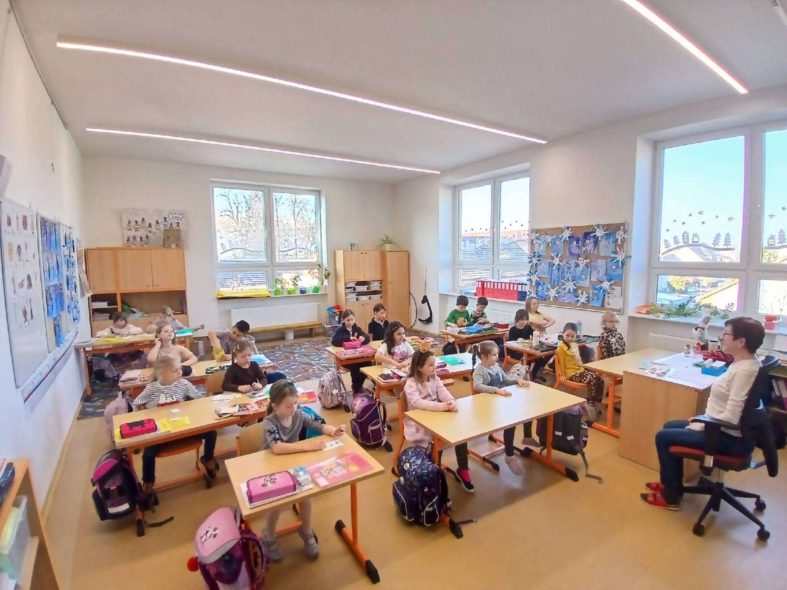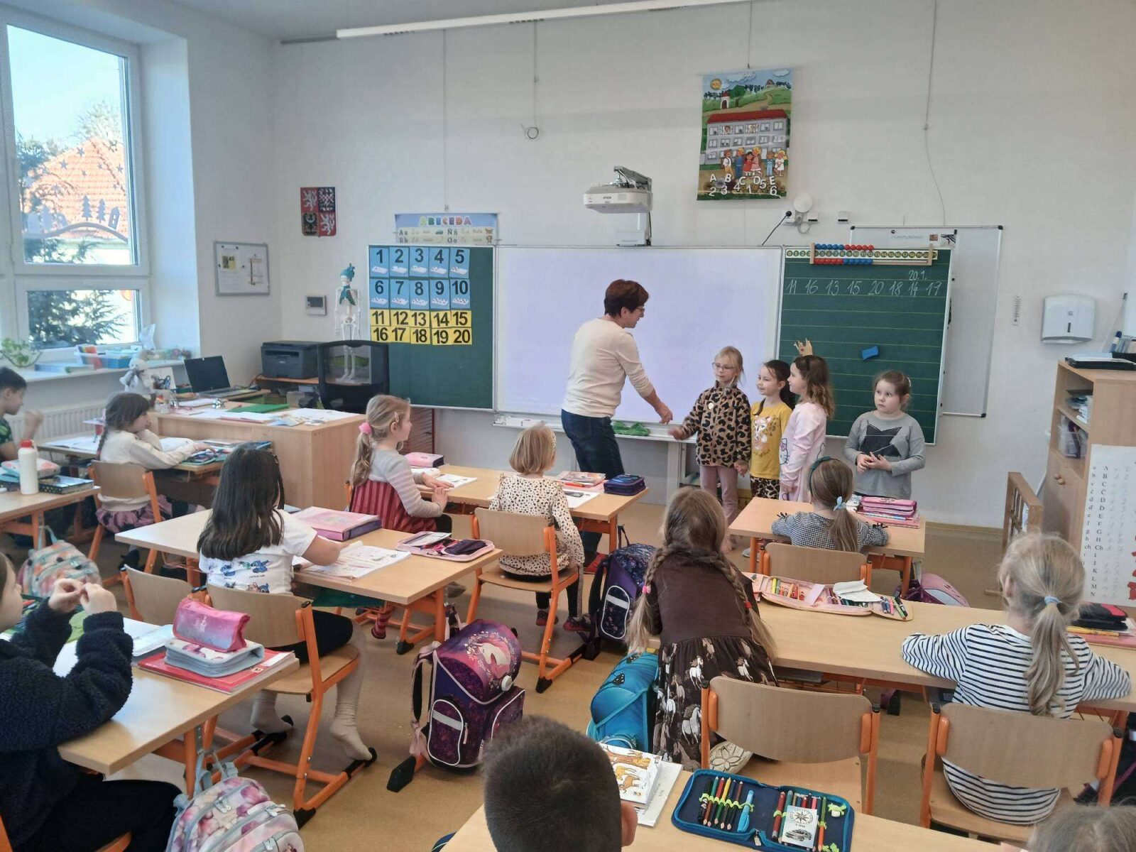 V úterý 23. 1. se byly budoucí prvňačky podívat, jak to vypadá v opravdové škole během vyučování. Děti z 1. ročníku nám přečetly krátkou ukázku ze čtení, předvedly hravé počítání, zazpívaly písničku, při které jsme si i společně zatancovali. Holky si také vyzkoušely, jaké je to sedět v lavici. Návštěva se všem moc líbila. ?