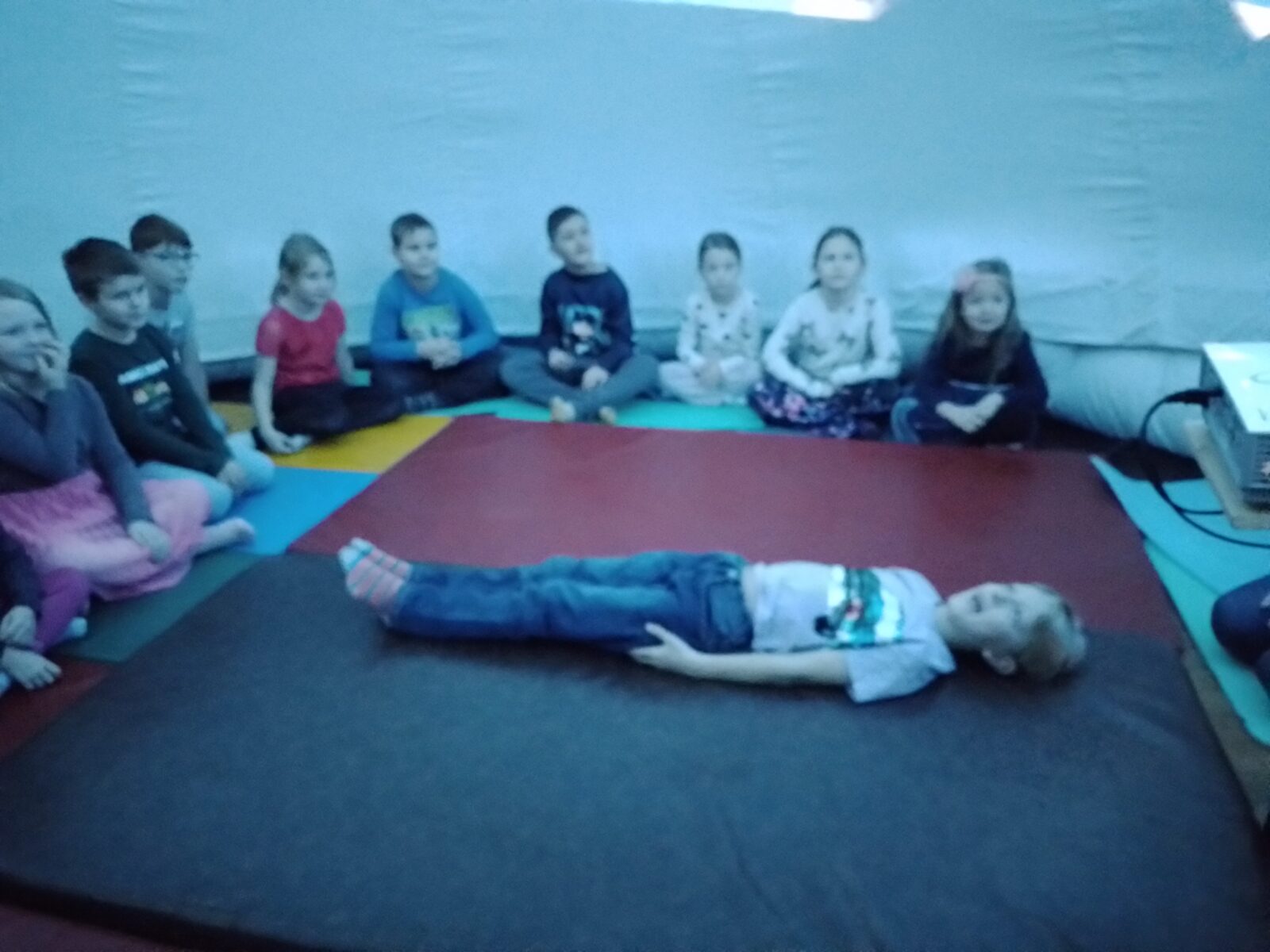 Byli jsme v nafukovacím vesmíru. Hráli jsme si na planety. Byli jsme Měsíc a Země. Střídala jsem se s mojí kamarádkou.