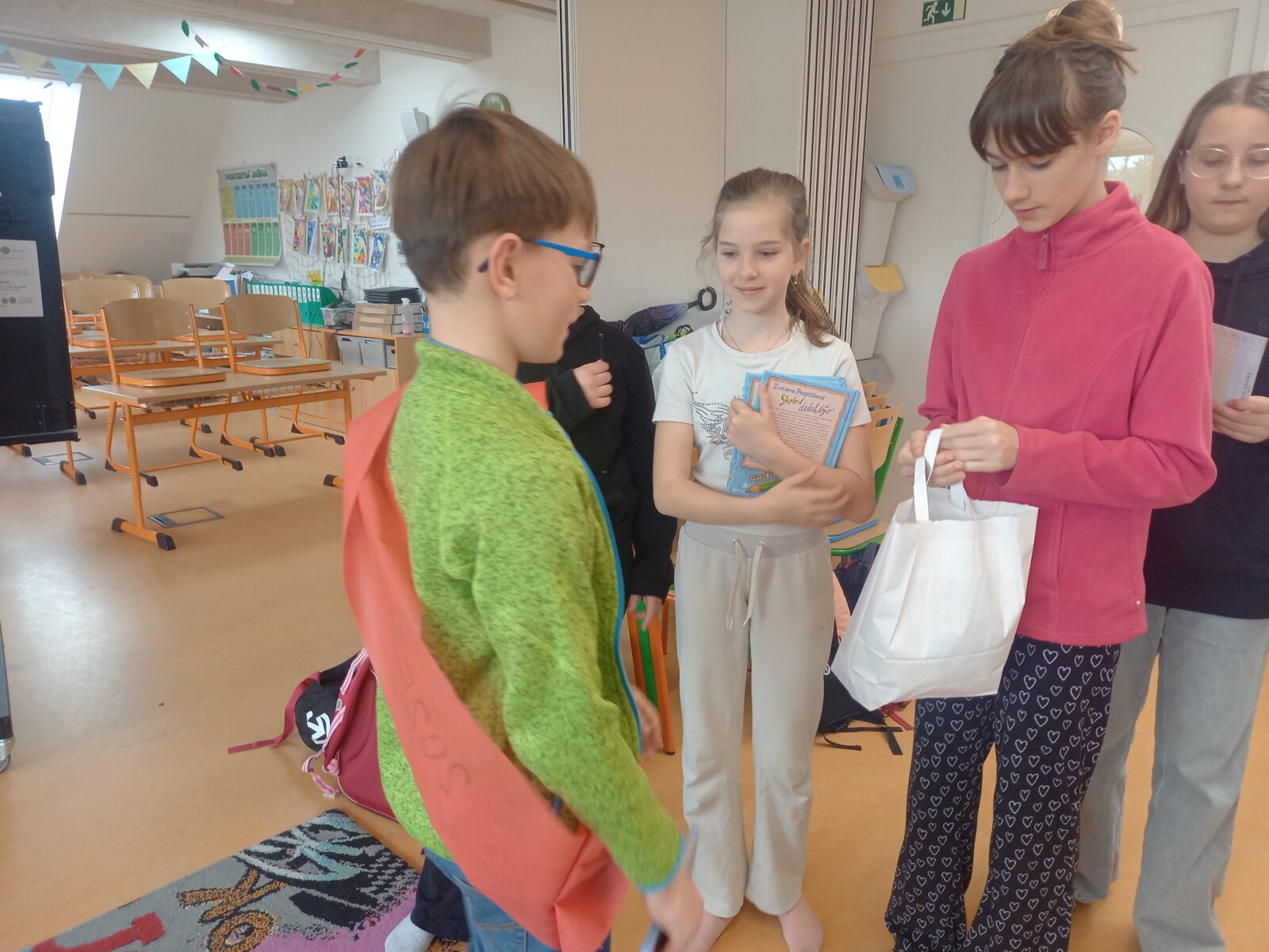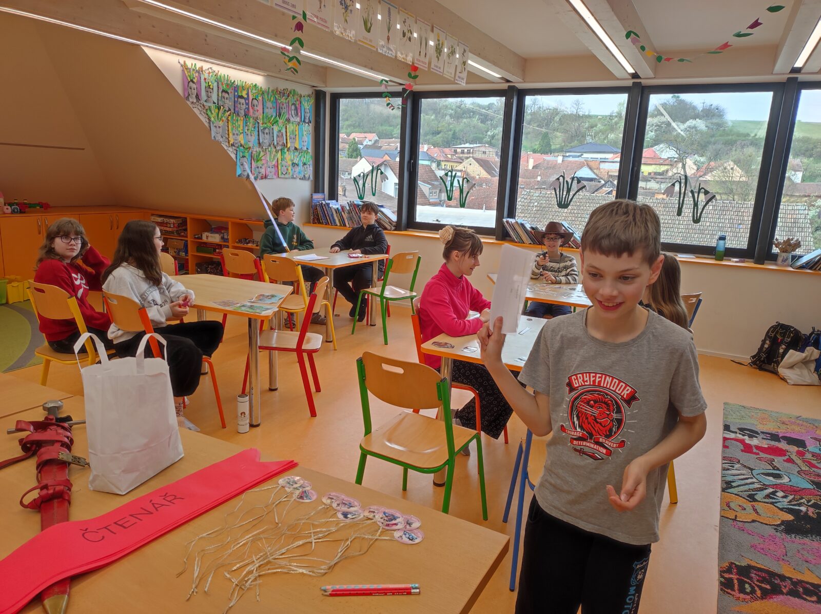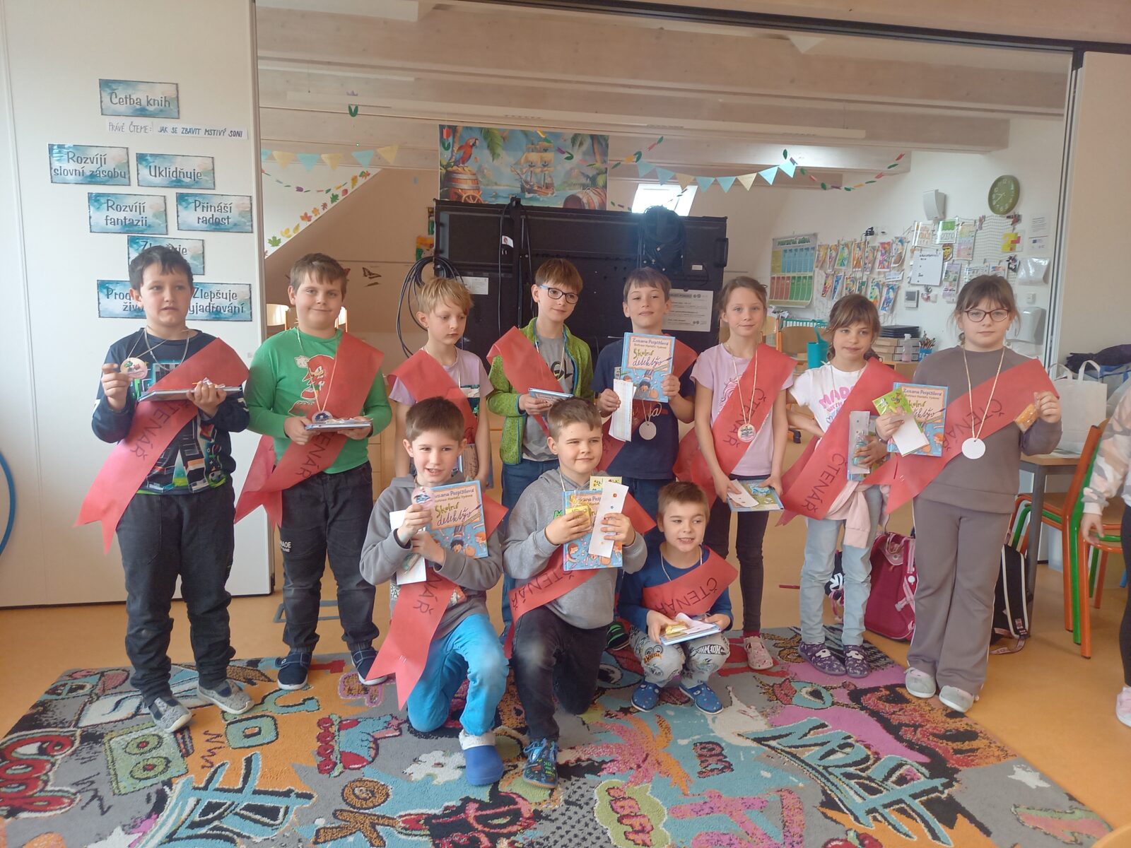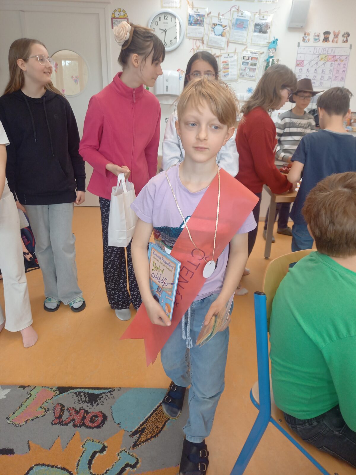 V pátek 10. dubna byli druháci tradičně pasování na čtenáře. Své pasování si museli náležitě zasloužit a prokázat ho v úkolech, které si pro ně připravili jejich starší spolužáci z 5. třídy. Všichni naši druháčci pilně trénovali čtení a tak se všem podařilo úkoly splnit. Pasováni byli skutečným rytířským mečem a za odměnu dostali medaili, šerpu, knihu, záložku a sladkou odměnu ve formě perníčků. Děkujeme žákům 5. třídy a paní učitelce Otrubové za přípravu této slavnostní chvíle a blahopřejeme druhákům – už jste čtenáři!