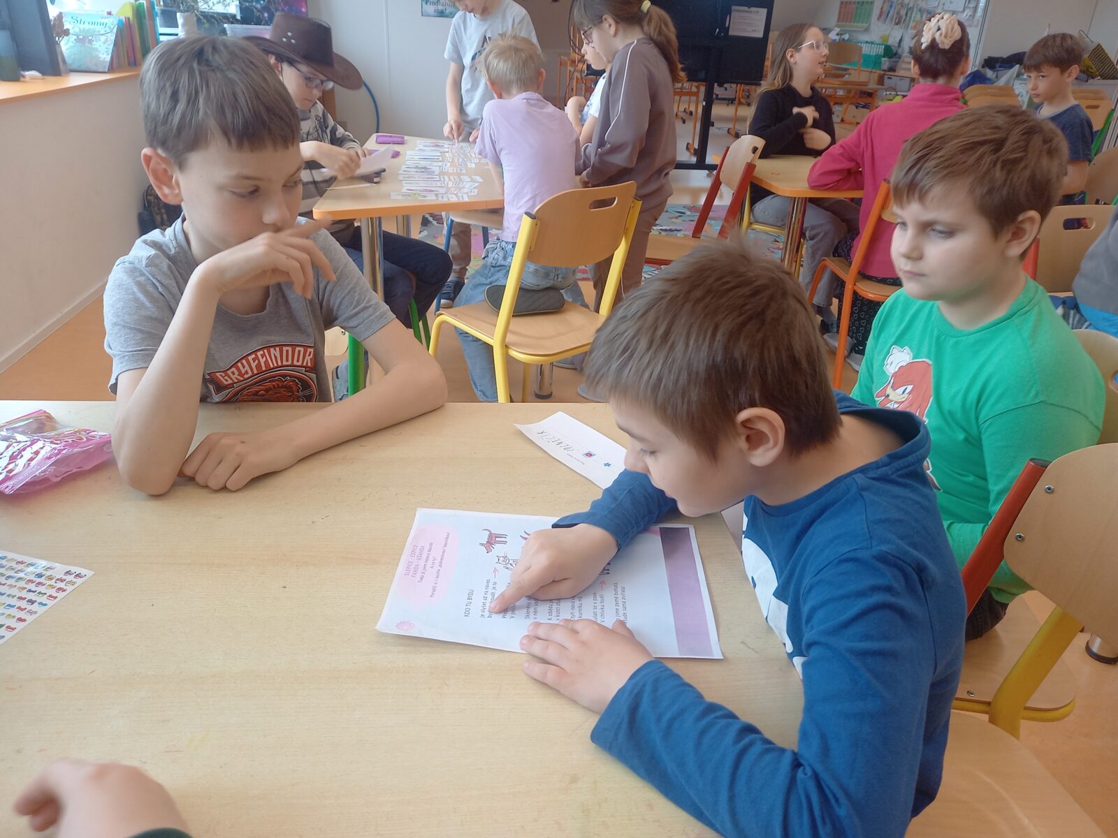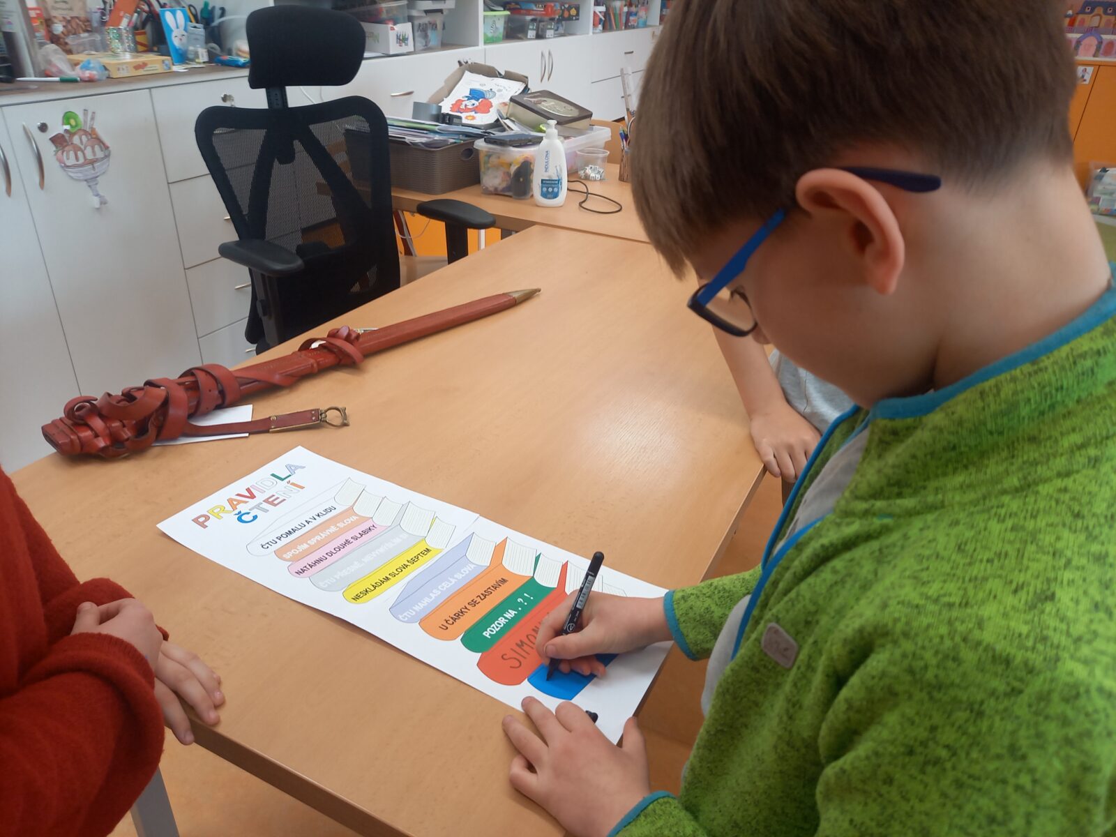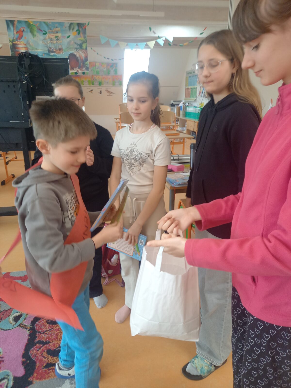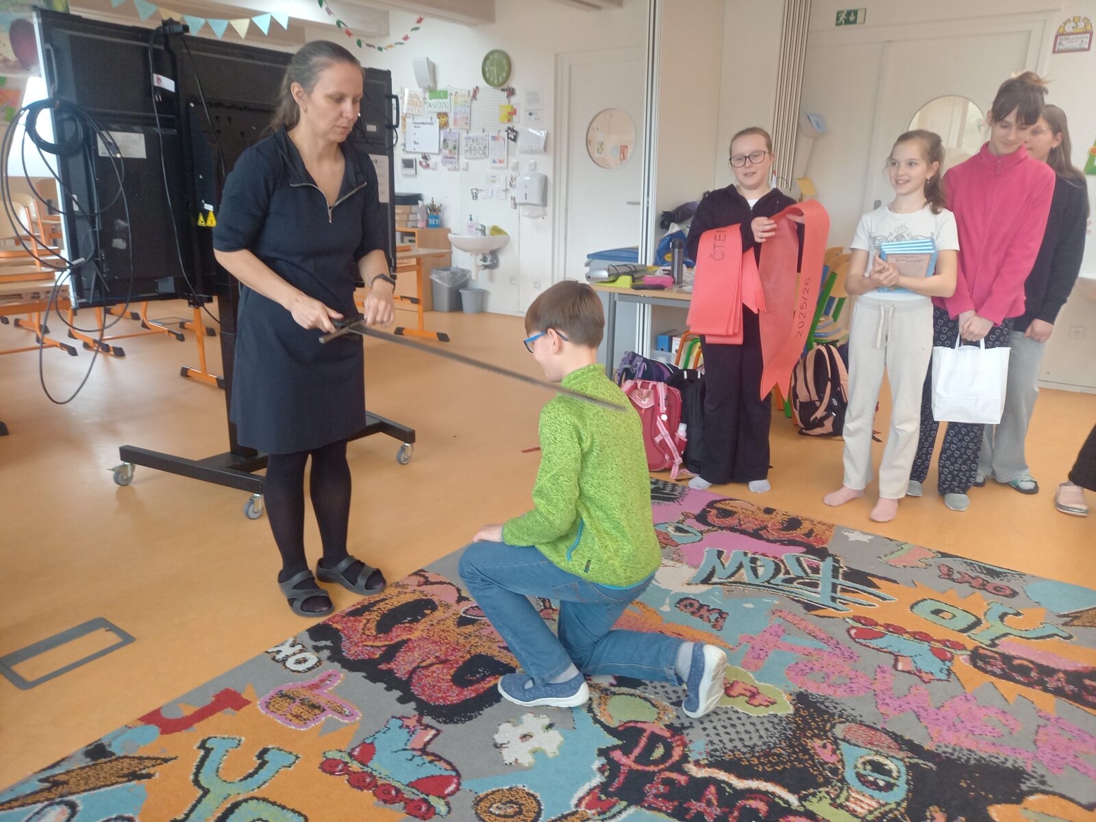 V pátek 10. dubna byli druháci tradičně pasování na čtenáře. Své pasování si museli náležitě zasloužit a prokázat ho v úkolech, které si pro ně připravili jejich starší spolužáci z 5. třídy. Všichni naši druháčci pilně trénovali čtení a tak se všem podařilo úkoly splnit. Pasováni byli skutečným rytířským mečem a za odměnu dostali medaili, šerpu, knihu, záložku a sladkou odměnu ve formě perníčků. Děkujeme žákům 5. třídy a paní učitelce Otrubové za přípravu této slavnostní chvíle a blahopřejeme druhákům – už jste čtenáři!