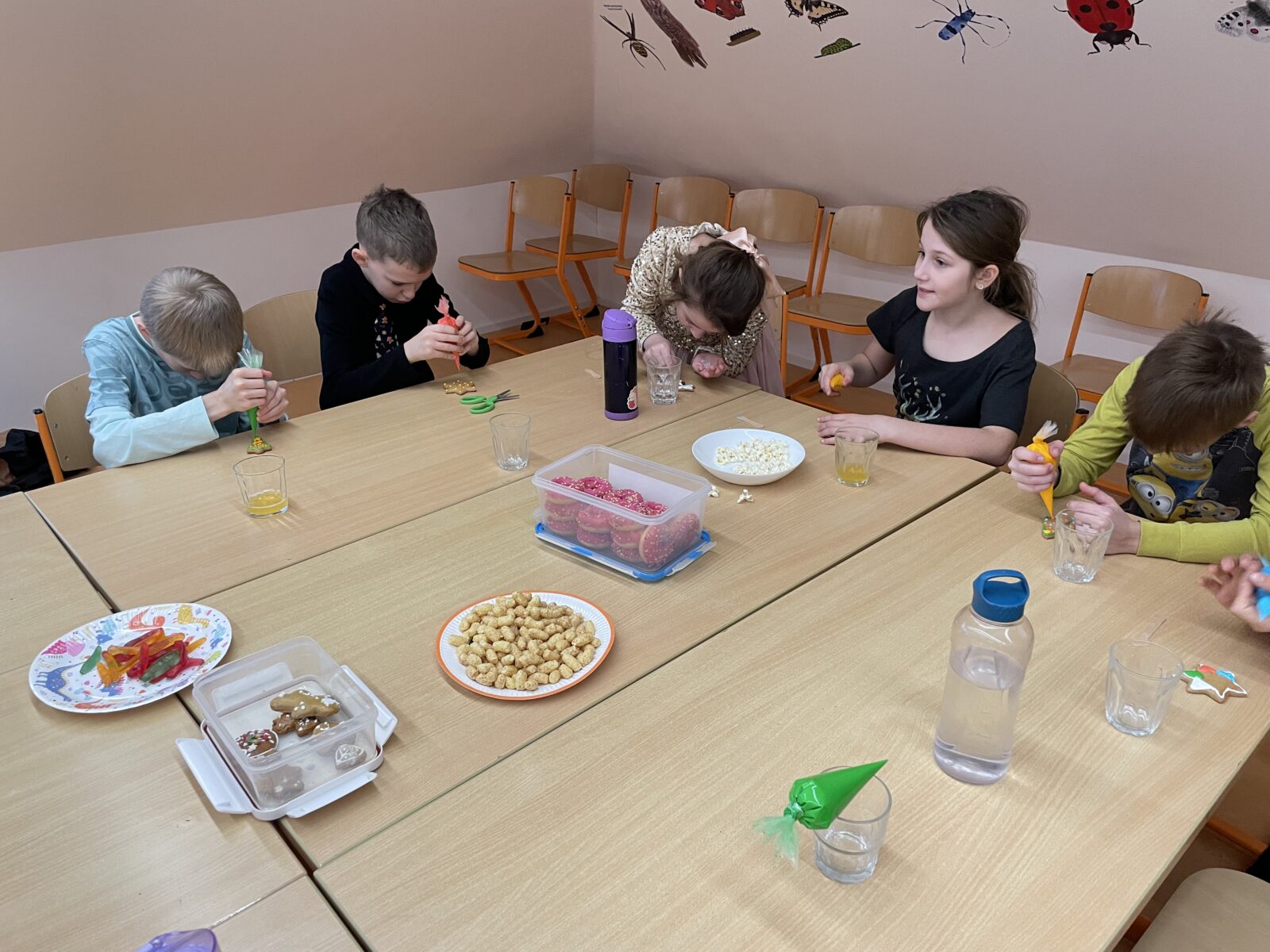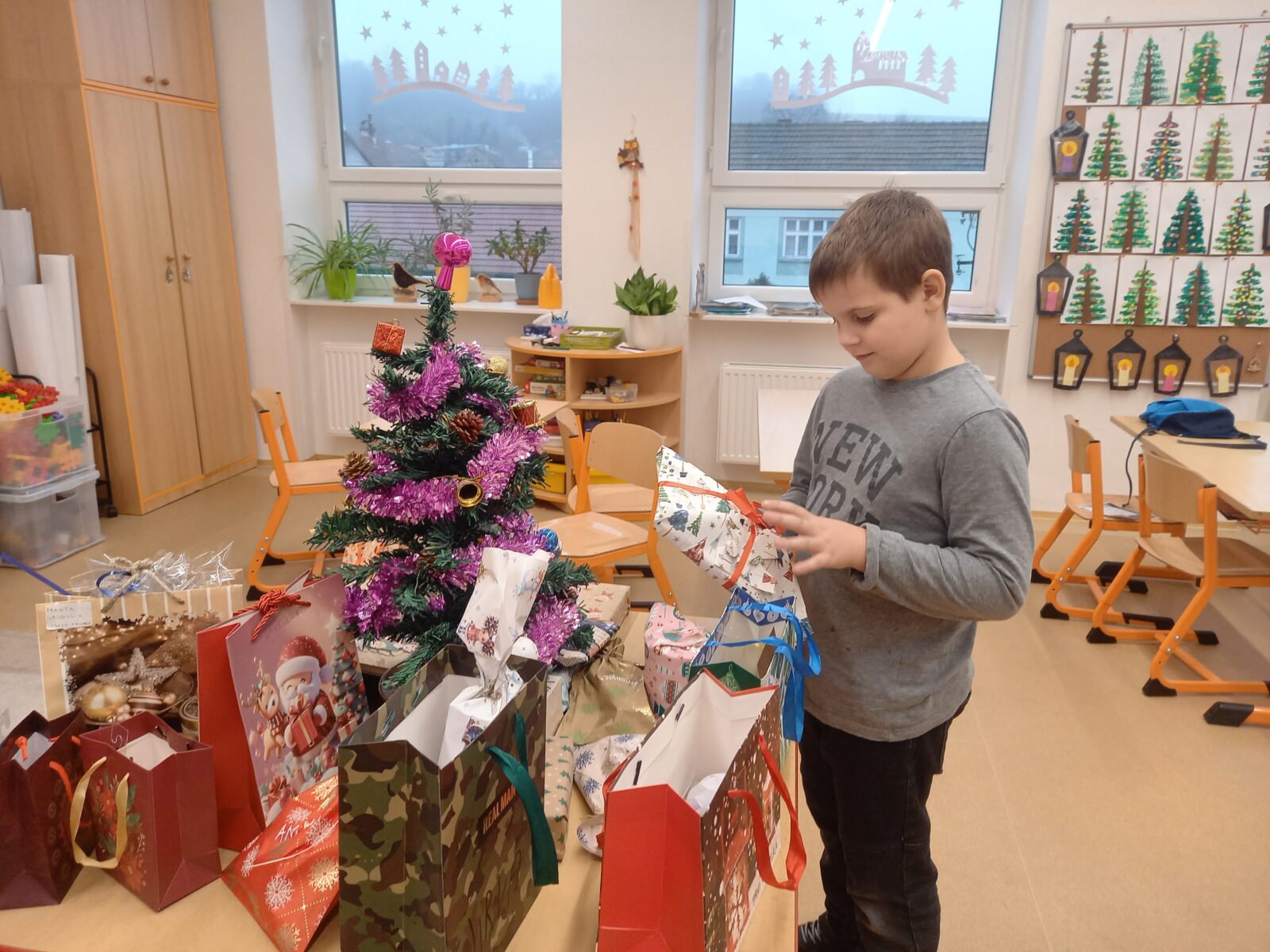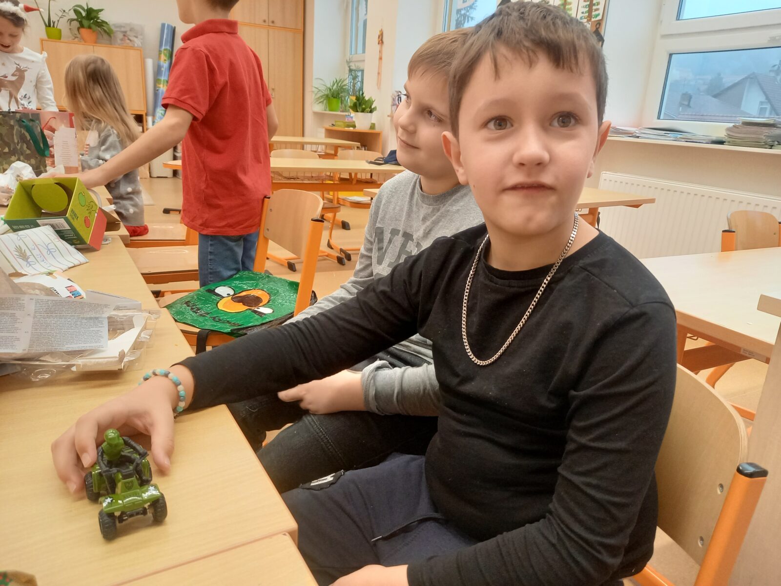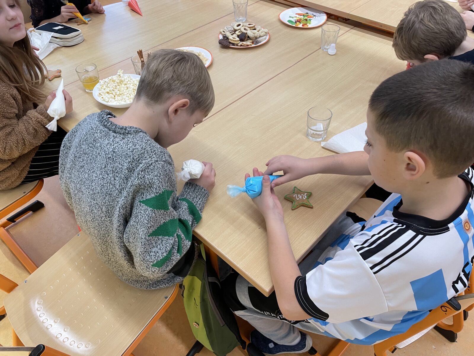 Poslední den před Vánocemi vládla ve škole uvolněná atmosféra. Dospělí i děti nemohli utajit vánoční těšení. Každá třída si na tento den připravila program, stromeček a dárečky pro spolužáky. Děti si vytvořily občerstvení – přinesly vánoční cukroví i něco na zapití, poznávaly vánoční zvyky, v každé třídě se vyráběl nějaký výrobek. Následovalo rozbalování dárečků, koledy nebo pohádka. Zvláště zajímavé tvoření proběhlo ve 4. třídě, kde obětavá maminka paní Vránová pomohla s napečením perníčků a celá třída tak mohla zdobit podle svých představ. Poslední den ve škole v roce 2025 jsme si užili také díky výbornému obědu od paní kuchařky – k radosti dětí byla pizza. Těšíme se na shledanou v roce 2026!